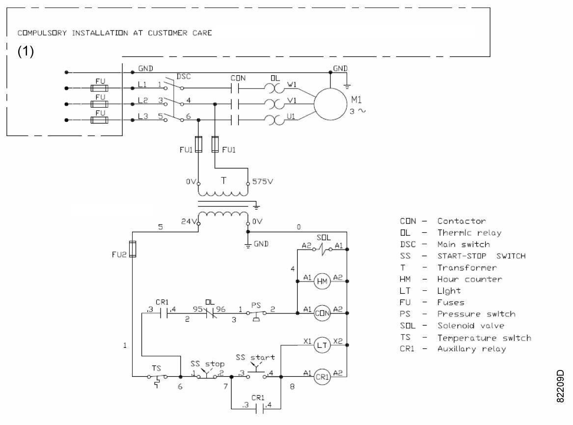 4.2 preventive maintenance schedule for the compressor. Circuit diagram (standard) (9822 0991 30). Air output is resumed (100 %), the compressor runs loaded.1.3 electrical system. Air output is stopped, the compressor runs unloaded. Keep the book available for the operator and make sure that the machine .